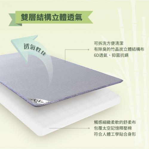 尚鼎浩 【竹晶炭】舒柔透氣記憶床墊 單人加大